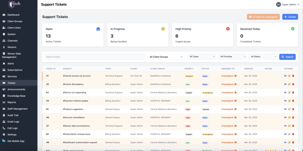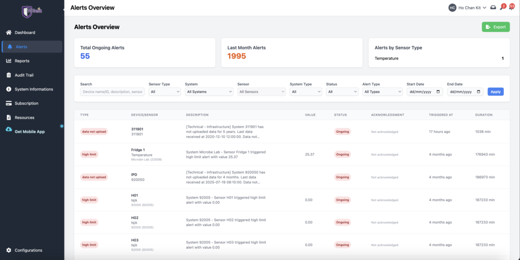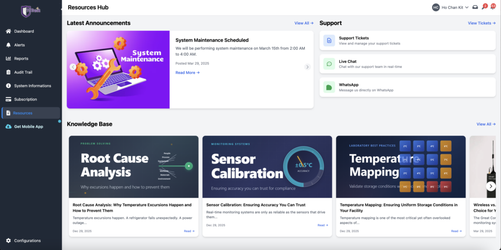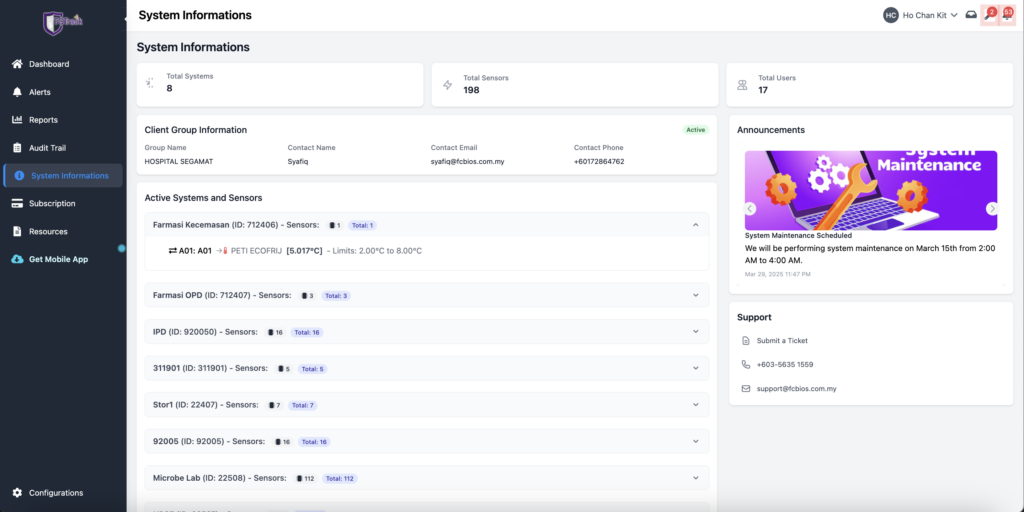 The platform enhances the existing TempGuard monitoring system by introducing a responsive user interface, advanced alert routing mechanisms, and integrated data management capabilities. It enables organizations to monitor critical parameters such as temperature, humidity, power status, oxygen, and CO₂ levels, ensuring operational safety, compliance, and efficiency.